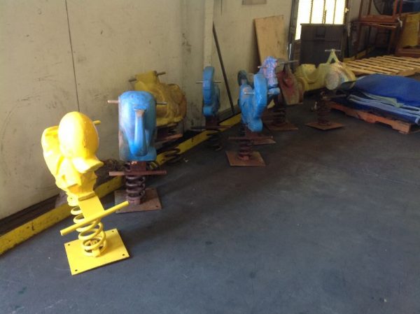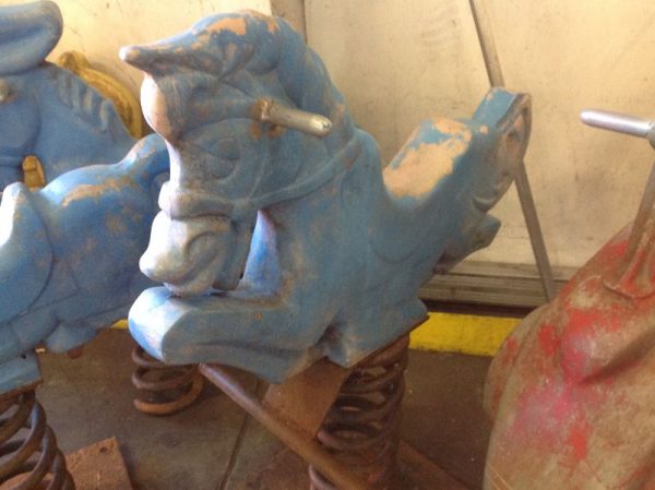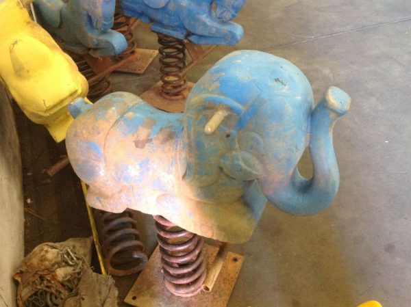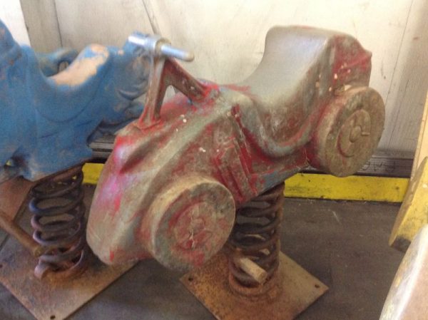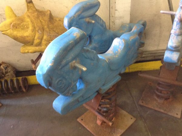 8 mid-century vintage playground spring rides in as found condition. Would like to sell as a lot only but if you want a specific ride, please email or call for pricing. Some hard to find rides included. Cars are sold. Rhino and duck sold also.