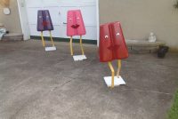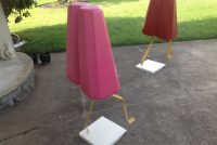 Grouping of 3 vintage movie theater snack bar popsicles in as found condition. These are just wonderful, measuring between 42″ to 47″ tall depending on flavor and 18″ wide. Made of foam core with a hard outside covering. Please let these beautiful “Girls” walk into your life……………Two sold, only purple remains……….