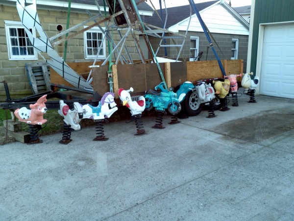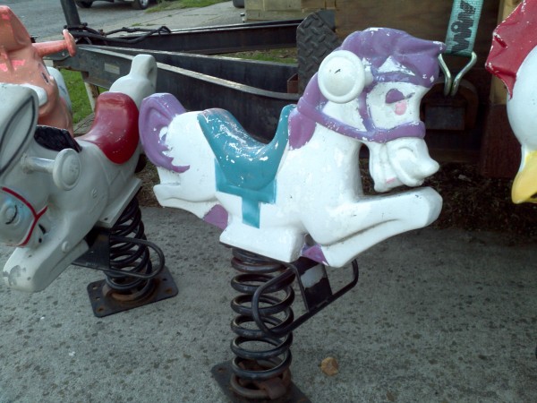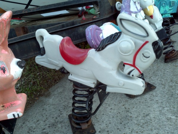 Group of vintage Saddle Mate playground spring rides in as found condition with spring and base attached. All rides are good to excellent condition with original paint. Sold as a set only but if the price is right on any one or combination of rides, all offers will be considered. What a find……….MOST ARE SOLD, ASK FOR AVAILABILITY