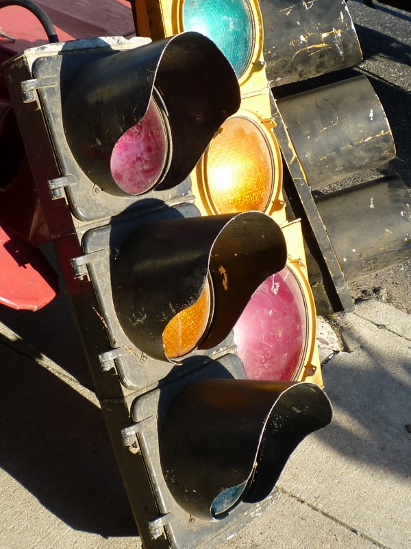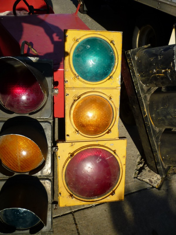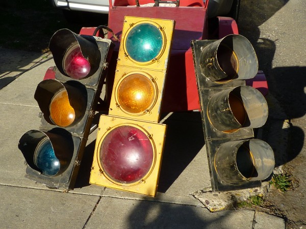 Group of three old street stop lights. Will need to be rewired and cleaned but look good for displaying. Sold as a grouping for one money…….