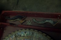 Barn fresh H.C. Evans horse race gambling wheel in as found condition with stand. Stand may need some minor welding and wheel will need cleaning. Not reverse painted horse scenes but some other material. Looks decent but worn. Ask questions if interested……….
