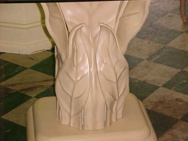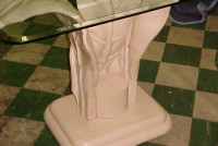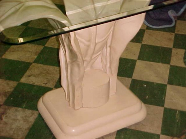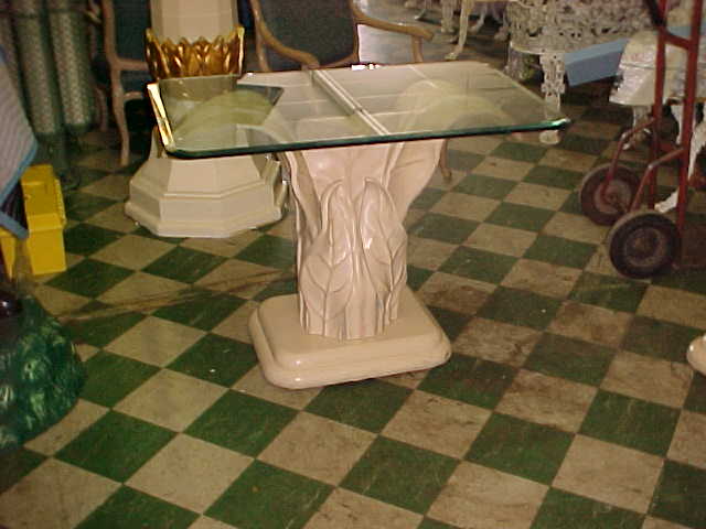 Grouping of floral high end side tables from a casino in Atlantic City. Nice detail with beveled glass top. Heavy construction. All will need a good cleaning and polishing. Normal wear and tear but otherwise in very good condition. Would look nice in a Florida room or accent piece in any setting………
