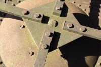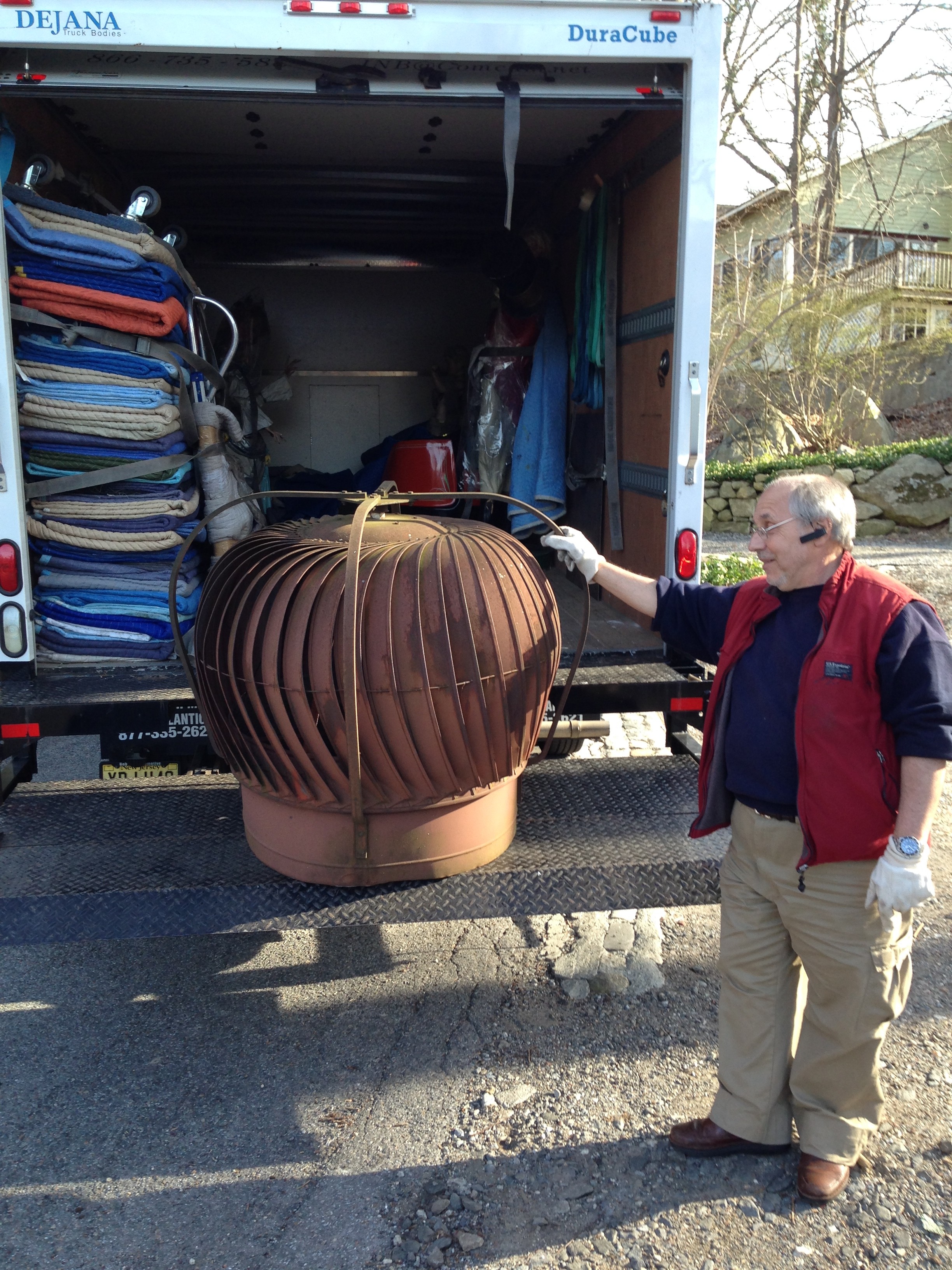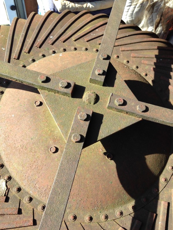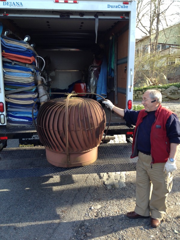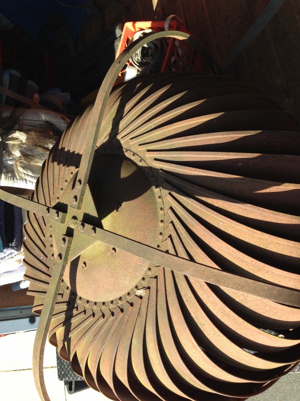 Huge antique barn turbine vent in as found condition. Measures about 3 1/2′ high x 3 1/2′ wide. Beautiful original shape………