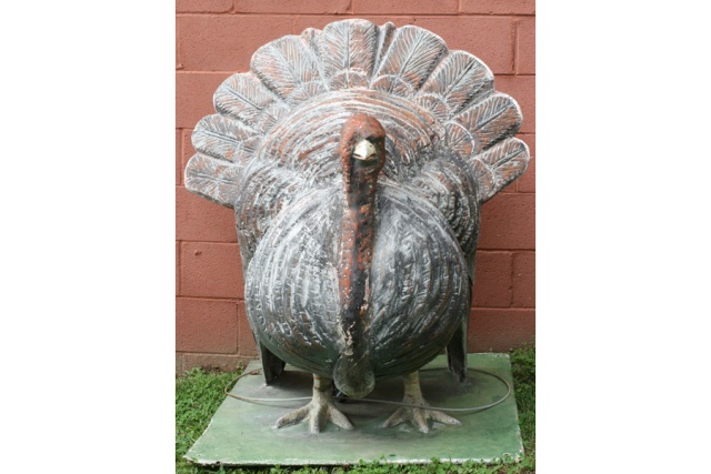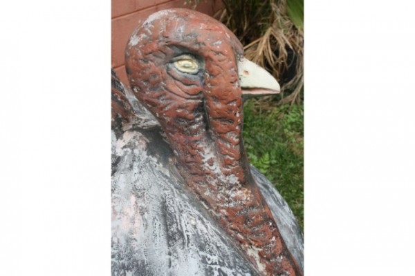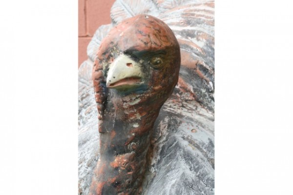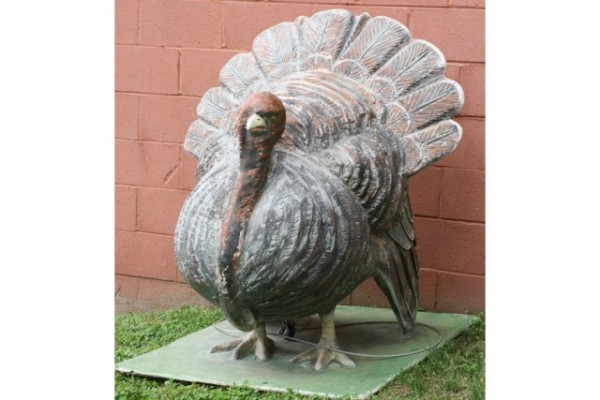 Gobble Gobble!!!! A neat fiberglass turkey that once stood in front of an old farmhouse in the mid west. Nice original condition with old paint. A wonderful addition to any restaurant decor or as a lawn ornament to annoy the neighbors……….