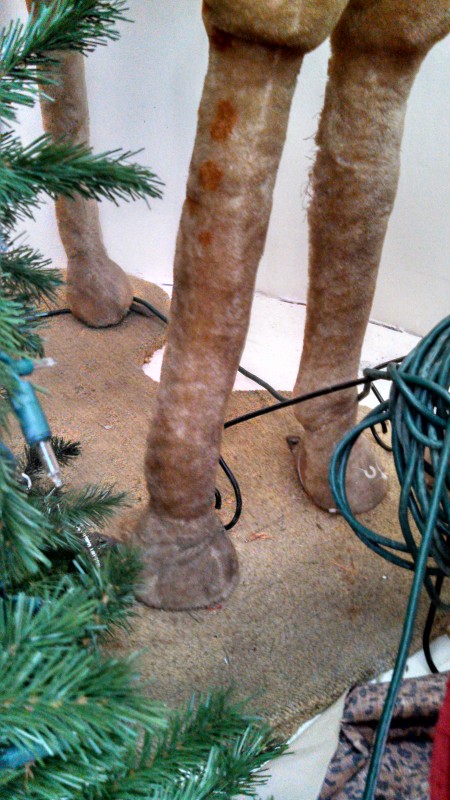 Huge 9′ plus vintage 1930’s mohair and hay Steiff studio model Giraffe from FOA Schartz toy store. Nice condition for it’s age but the Giraffe does have some losses. Will need minor restoration as some of the mohair is torn and the tail is missing. Will display well dispite the problems. Has the famous ear button. All he needs is a good home………