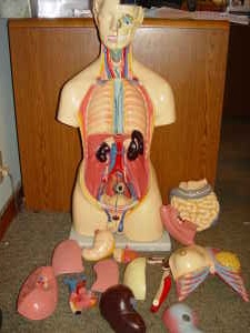 Educational 1920’s-1930’s human body model. Used by medical students for training purposes. Contains both male and female parts. All parts are removable. Unusual conversation piece for display………
