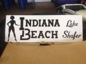 Vintage N.O.S Indiana Beach Lake Shafer tin sign in as found condition. 2 available measuring 10″ x 28″. As close to mint as you can get…………