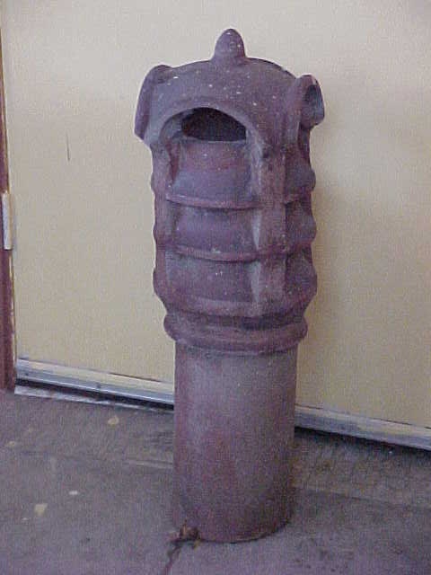 Wonderful antique industrial element. Terracotta construction from an old Trenton, New Jersey estate. Stack top measures 36″ tall x 18″ diameter. Applications are endless. Use in the garden, along a sidewalk or next to a fireplace……….