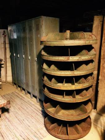 Vintage rorating industrial hardware bin in as found condition. Rusty with character and ready for displaying. You know you have been looking for one of these……….
