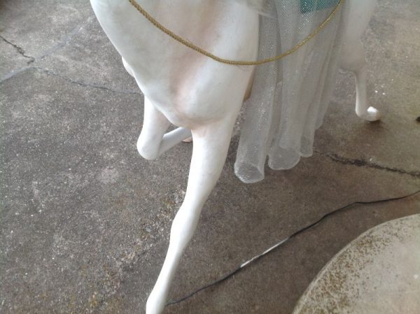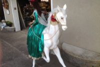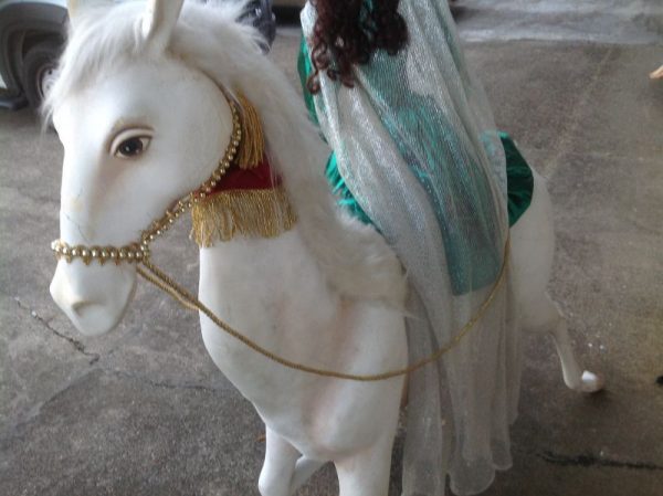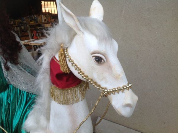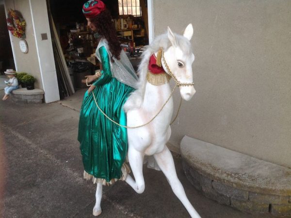 Wonderful vintage RK International woman on horse animated store display in working condition. Horse moves head up and down, lady moves head side to side. Huge piece of animation measuring almost 5′ long by 5′ high. Minor wear but overall in very nice condition for displaying………….