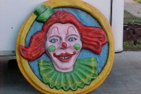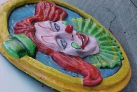 Amusement park fiberglass clown face measuring 4″ in diameter……..