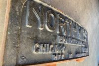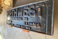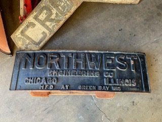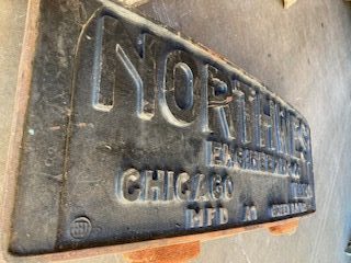 Large antique cast iron sign Northwest Engineering Chicago Industrial Crane in as found condition. This massive sign probably weighs in at about 200 pounds and measures 53′ long x 16′ high x 1′ thick. Raised letters and in very nice shape for it’s age…………………..
