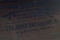 Barn fresh 1876 revolving Danner bookcase in as found condition. Production of these cases began in 1876 and in 1894 appeared in the Montgomery Ward catalog which boosted an already flourishing business for Danner. Will need some restoration and the top piece of wood has a slight warp. A little clean up and polishing and she will be ready for displaying. Own a piece of history now……….
