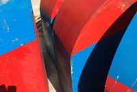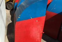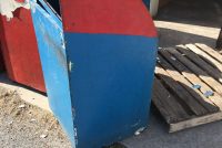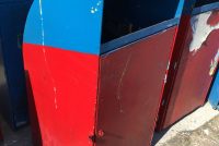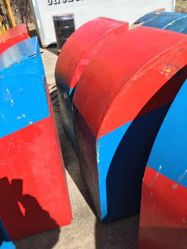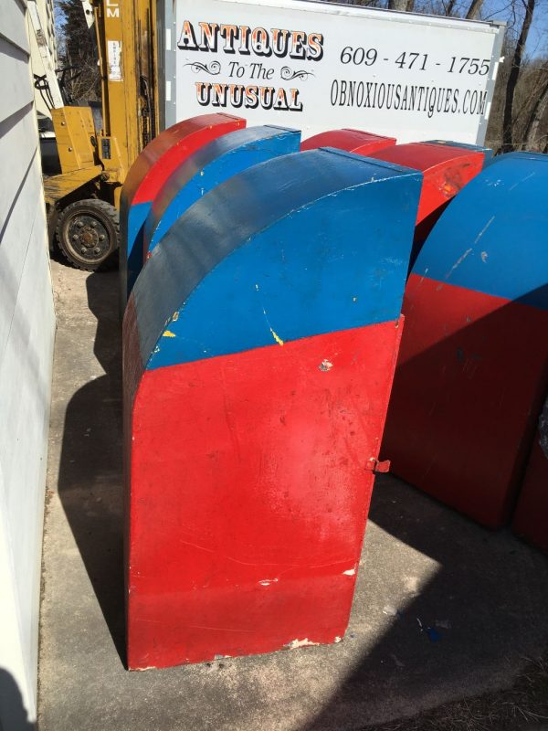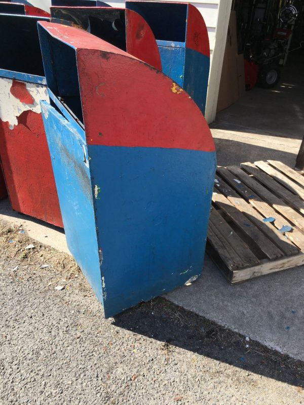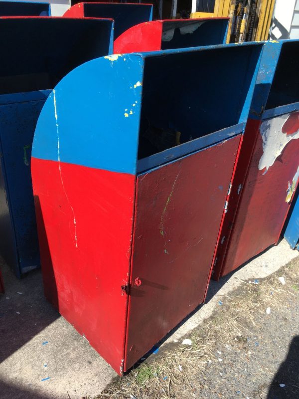 Vintage mid-century Astroland Coney Island amusement park trash cans in as found condition. Well used, peeling paint but in overall good solid condition. 3 available.