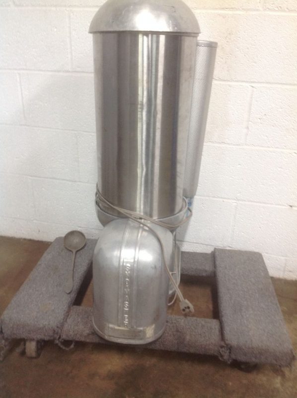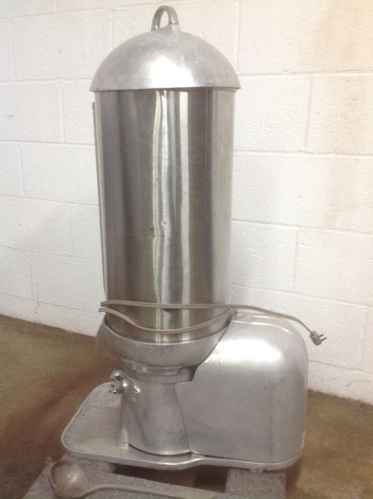 Vintage aluminum mid century 1950’s Sno Master snow cone machine with cup holder in as is working condition. Nice shape with years of use remaining. A real workhorse of a unit. Complete with ladle…………
