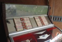 Mid-century AMI D 40 coin operated jukebox in as found condition. Motor runs but will need servicing to function correctly. Looks to be original with a slight crack on top plastic marquee and lower corner left of bottom arrow near coin entry mech. Neat old antique box……….