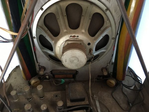 Vintage 1950’s AMI C jukebox in as found condition. Looks complete with a cracked right side plastic. Jukebox will need