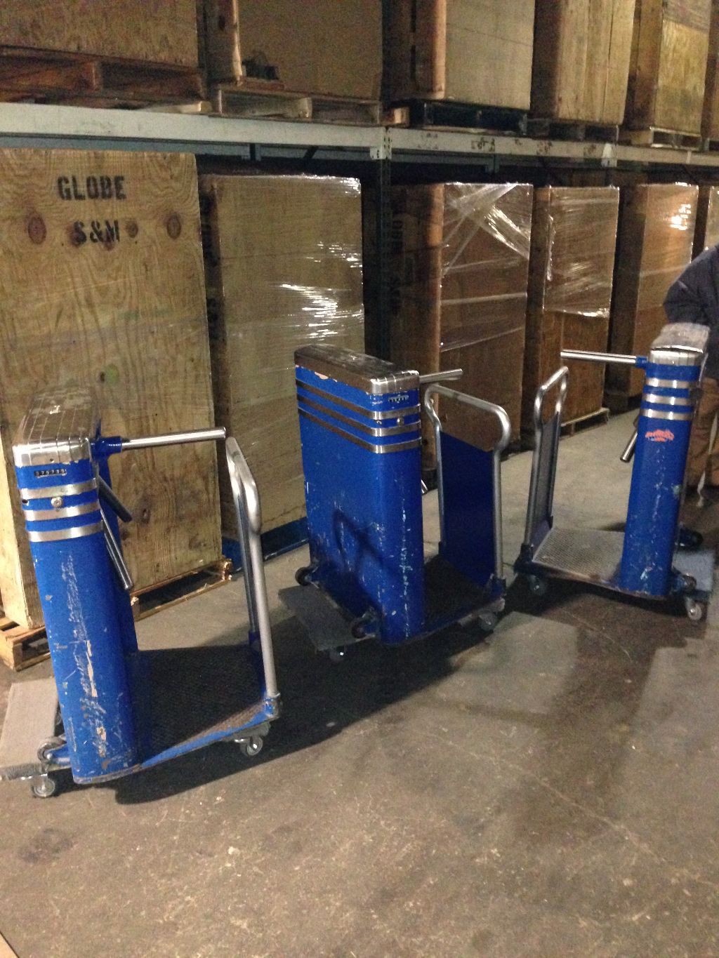 18 mid-century Perry turnstiles from Madison Square Gardens, NYC. As found working condition. Turnstiles were removed from the Garden back in 2013 and discovered in a Queens warehouse just a few weeks ago. Most have scratches but overall look to be complete except for a few missing counter knobs. Prices vary depending on choice, ours or yours………..