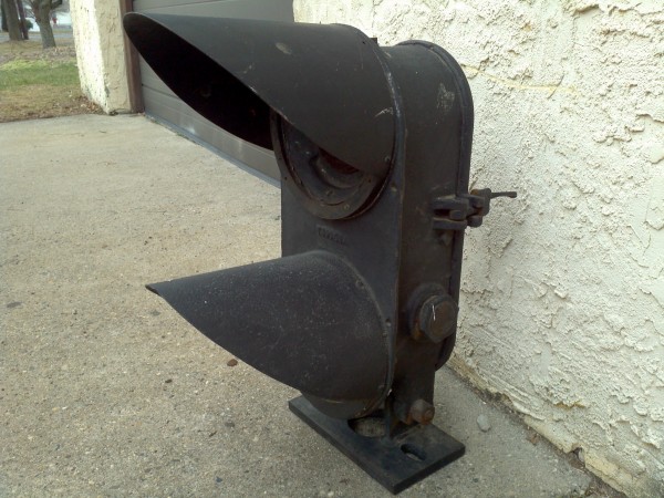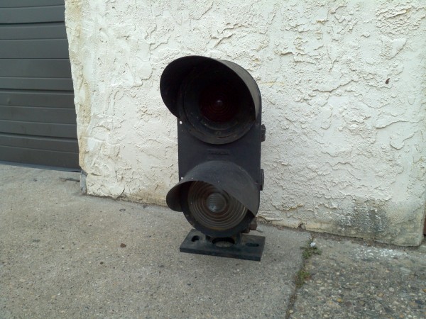 Midget train signal light in as found condition. With the exception of a top missing outside lense, appears to be in original condition. Heavy and ready to be displayed……