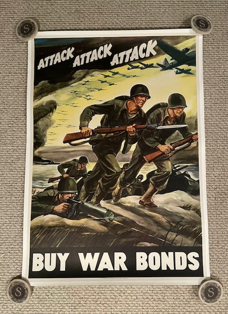 MINT on Linen WWII Poster Attack Attack Attack Buy War Bonds 28.5×40”