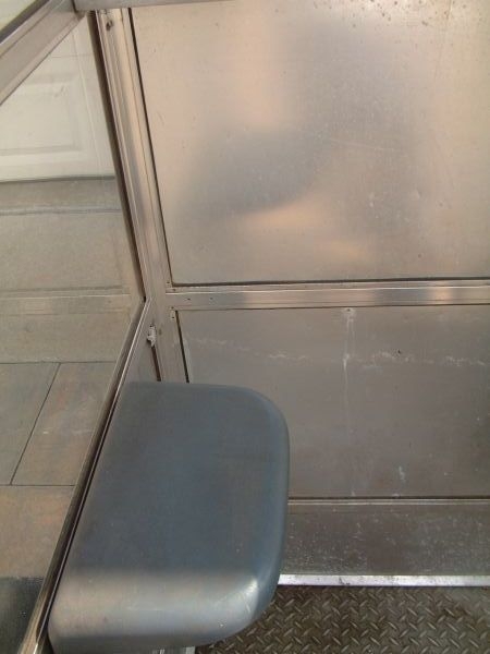 NY vintage aluminum corner phone booth in as found condition. Nice overall look; however, the pay phone is missing. Shiny and bright but will need some additional polishing………