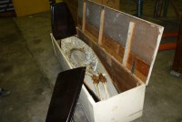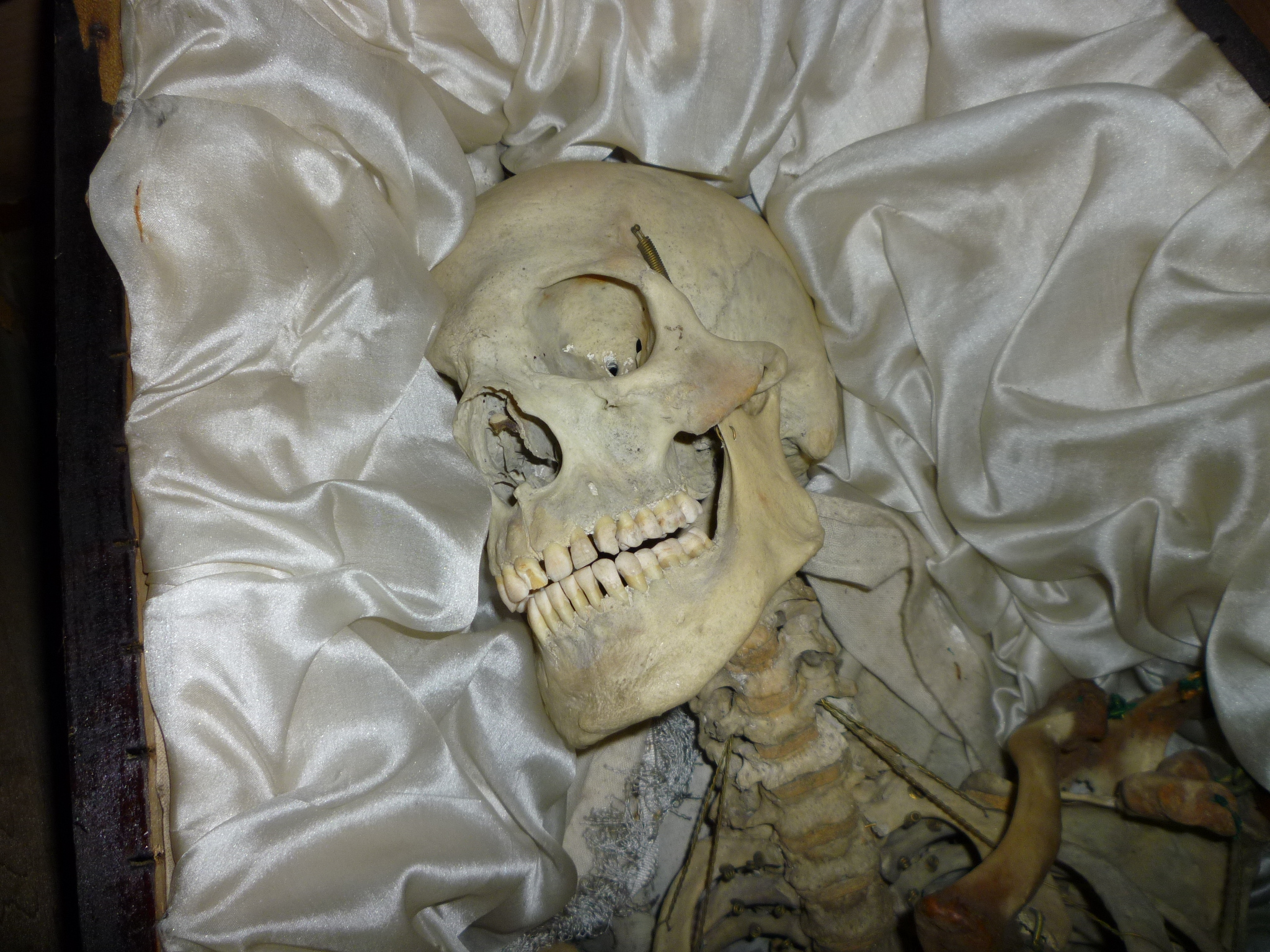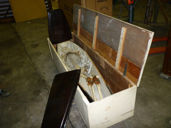 Directly from a now closed Odd Fellow Lodge in upstate New York. Includes skeleton, casket and storage box. Vintage skeleton used by Odd Fellows during ceremonial meetings. Something everyone needs……………