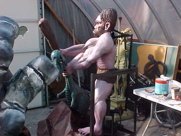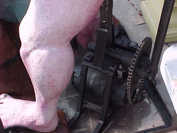 THIS IS AN EARLY CAVEMAN AUTOMATON, USED IN A DARK RIDE FUNHOUSE,LOCATED IN WILDWOOD NJ. HE IS CHAIN DRIVEN. HIS HEAD MOVES UP AND DOWN. HE BEATS THE HECK OUT OF THE DINOSAUR. TOTALLY RESTORED AND READY TO GO. HE HAS A HEAVY DUTY MOTOR, AND METAL FRAME.