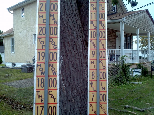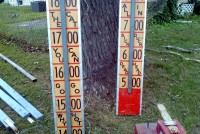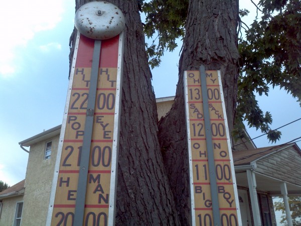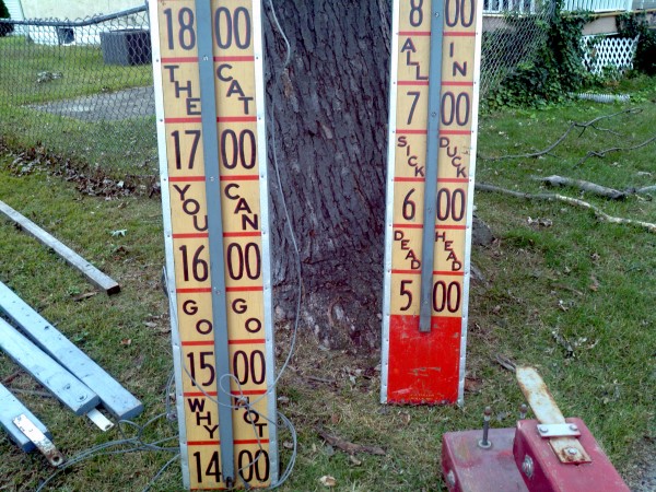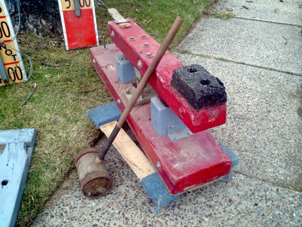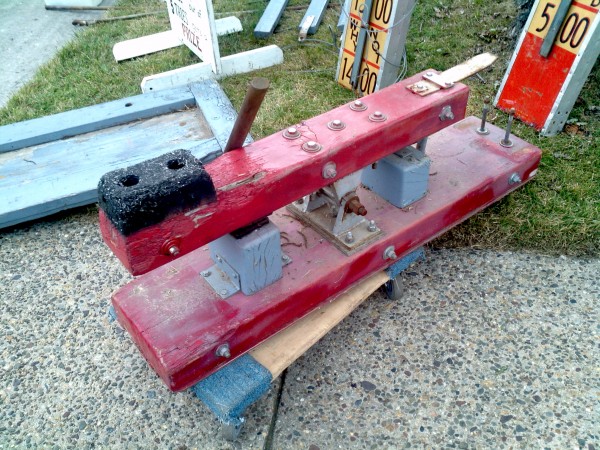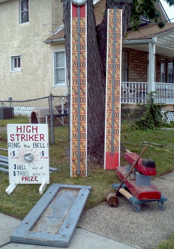 Old strong man carnival high (hi) striker that graced the midway of many old carnivals during it’s lifetime. Measuring over 20′ tall, this massive game is in very good condition showing only minor wear and tear. Comes complete with all tie downs , hammer and spikes. Have fun and impress someone with your strenght………..