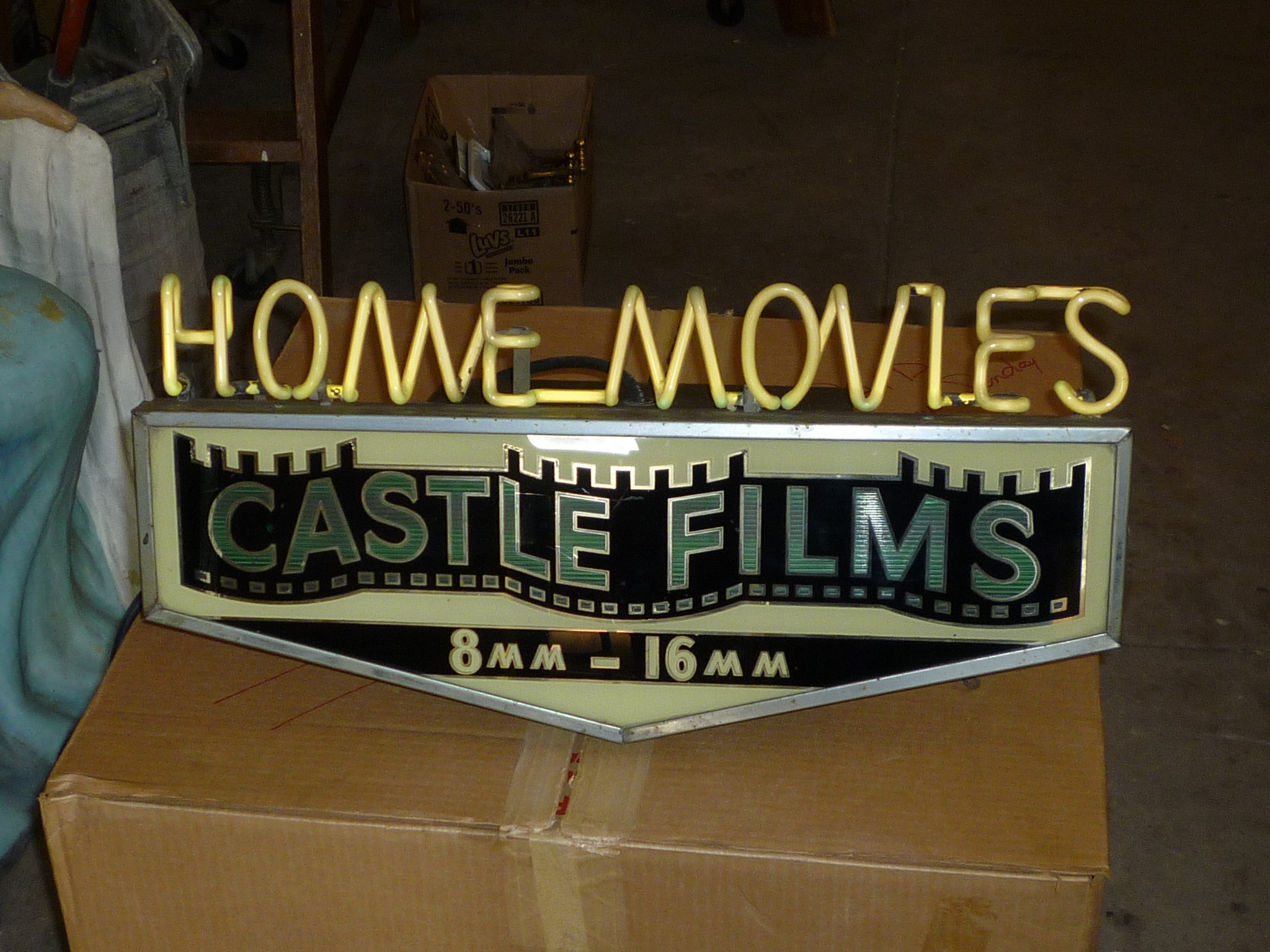 Rare Castle Films neon sign in working condition. Screened glass advertising is bright and with no peeling. Makes a great home theater, man cave or den addition……………