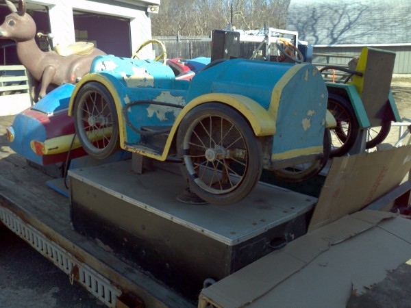 Old vintage coin operated penny arcade kiddie ride car in as found condition. Will need restoration but looks to be complete. If you need additional information on condition, please call or email (jnb@comcast.net)……….