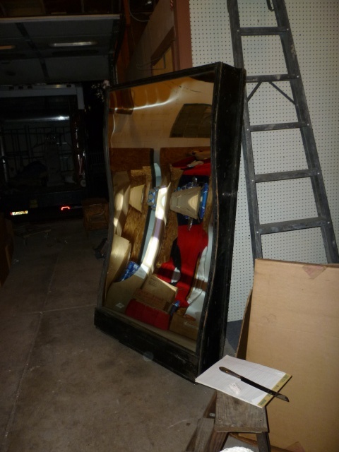 Original fun house glass mirror from a traveling carnival in New York state. Nice old park paint. Would make a nice addition to any room………..
