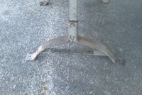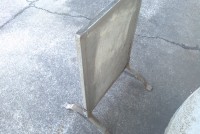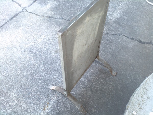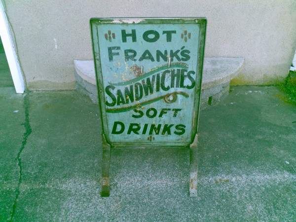Old hot dog stand sign in as found condition. Just found in a Burlington, New Jersey home where it has been holding up an oil take for the past 65 years. Will need to need to be cleaned but all original. Sign once stood outside an old hot dog stand where home made root beer soda was manufactured. Just a great old country store look……..