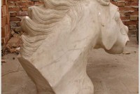 Spectacular marble sculpture of a horse head. Stunning life size head meticulously crafted in solid hard white marble. Grand in size and would make a fantastic decorative display in the foyer or entranceway. Perhaps, even in the garden. Measures 44″ wide x 30″ high x 12″ deep…………