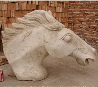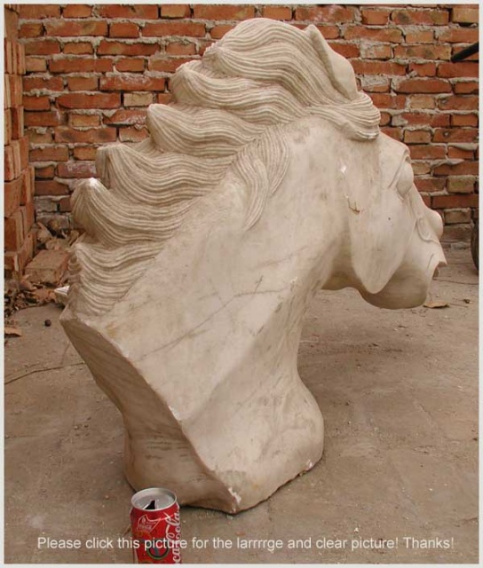 Spectacular marble sculpture of a horse head. Stunning life size head meticulously crafted in solid hard white marble. Grand in size and would make a fantastic decorative display in the foyer or entranceway. Perhaps, even in the garden. Measures 44″ wide x 30″ high x 12″ deep…………