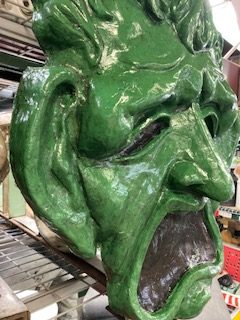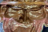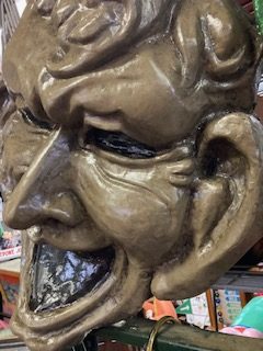 Old paper mache theater Comedy & Tragedy faces in as found condition. Recently restored for years of continued beauty. Each face measures 36″ tall x 29″ wide x 4″ deep. Just a beautiful example of early paper mache. Sold as a set of two ready for hanging……….