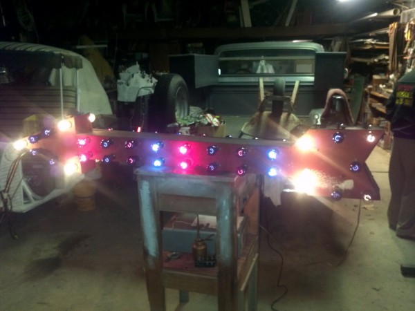 Magnificant old store, vintage double sided flashing arrow in working condition measuring over 5′ long with new bulbs. Neat old sign that will fit almost anywhere…….