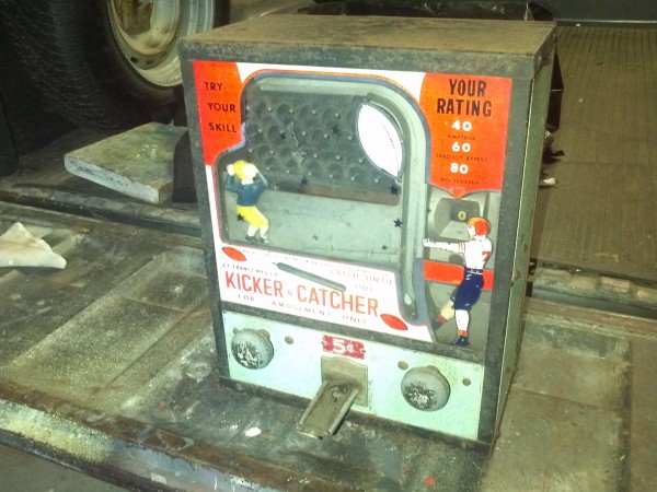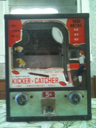 1940’s/50’s coin operated counter top kicker catcher football arcade machine in as found condition. Machine works but will need to be cleaned and serviced. Looks original. Will need a new lock and key. Ask questions if interested……
