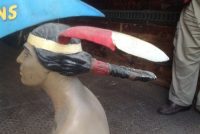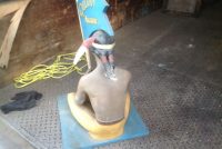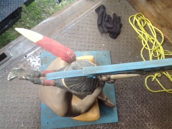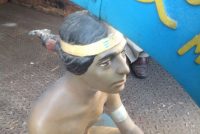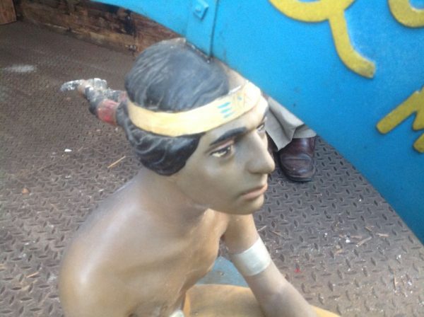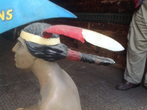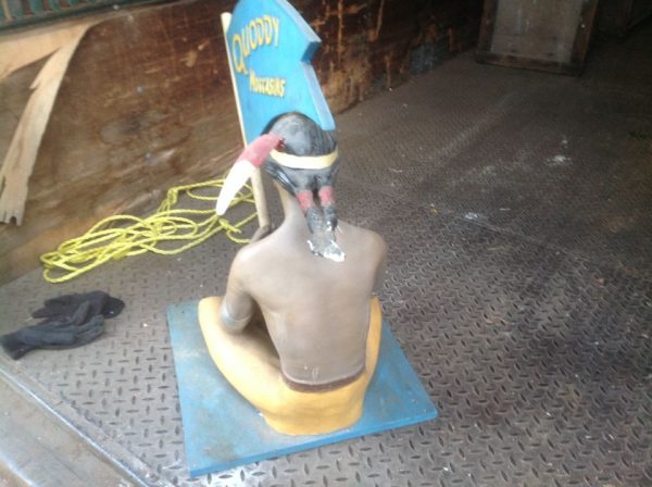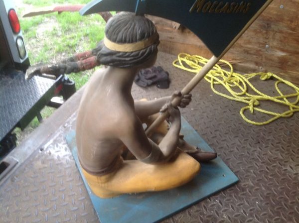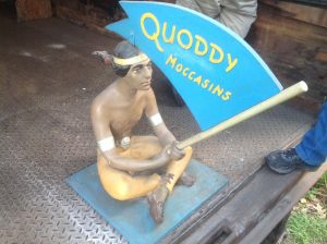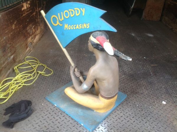 Fantastic vintage Quoddy moccasins Indian advertising store display in as found condition. Stored away in a storage container for over 30 years. Will need a good cleaning but otherwise in nice condition with the exception of a small missing piece of hair. Please see photo’s below for a clear view……