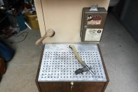 Rare coin operated Shine Boy vending machine in as found condition. Looks to be complete with keys. Nice graphics. Has not been tested but the principal operating instructions are deposit coin, spray on shine liquid and buff. Some liquid is included but looks to be old. Neat old piece of coin op………….