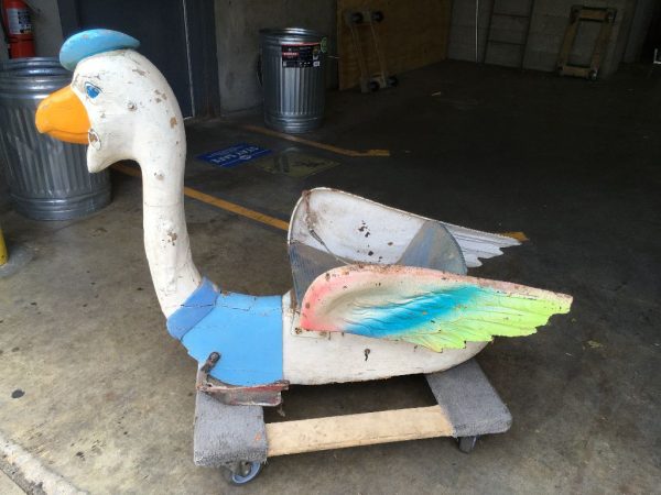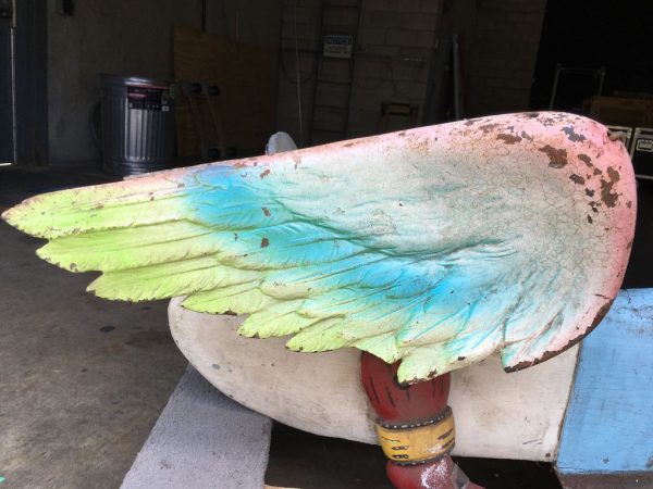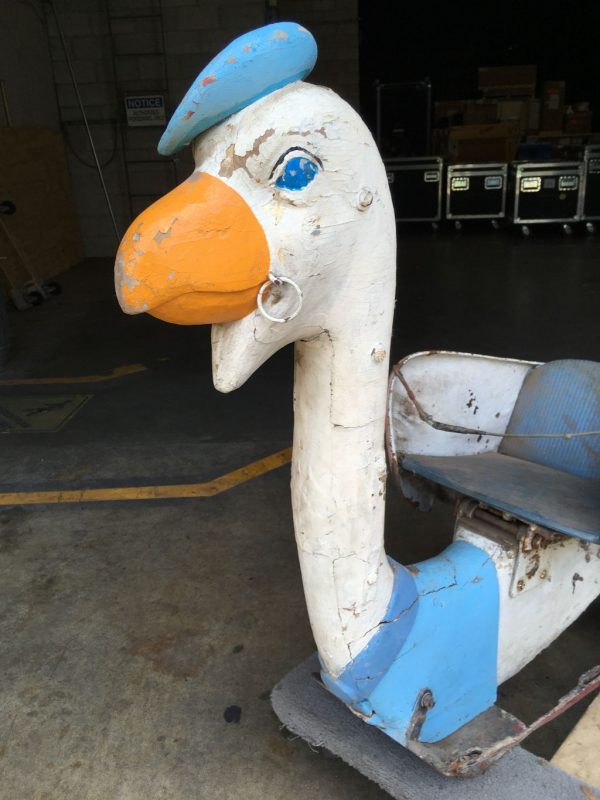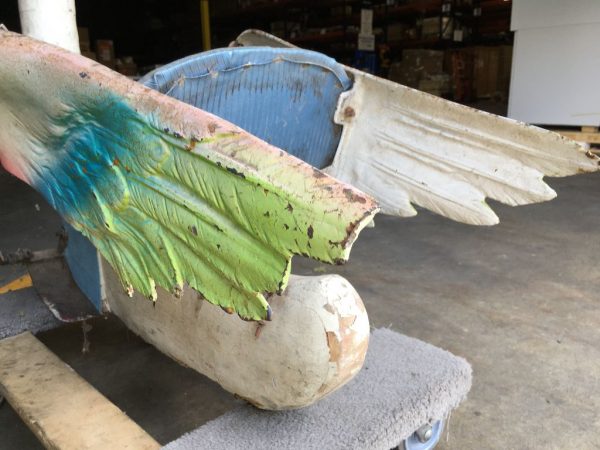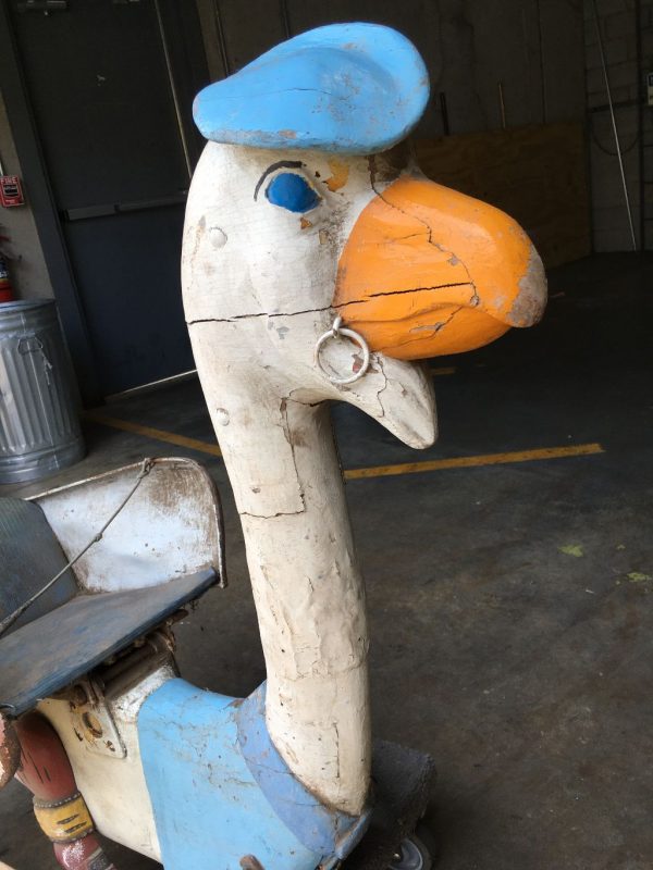 Rare antique Spillman Carousel Blue Goose in as found condition. Only 3 Spillman rides were manufactured. One ride was destroyed, one salvaged and one complete and ready for placement at a park in South Jersey early next year. Some minor restoration and cleaning and this beauty will “POP”. Hard to find. Metal and wood construction. Buy it when you see it…………..
