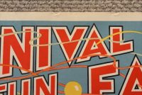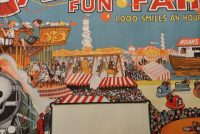 This rare Fun Fair and Carnival poster from Willsons of Leicester was printed in the 1930s. The blank white section would be where dates, times and location would be stamped. Featuring The Death Riders, Ghost Train and Noah’s Ark among other rides.
