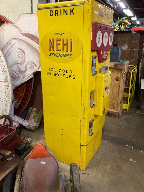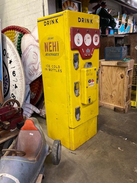 Rare coin operated Nehi beverage soda vending machine in as found condition. From all indications, the machines looks complete but has bot been tested. Ask questions and we will attempt to answer them. Neat old machine with plenty of character. Good graphics with some cabinet scratches………