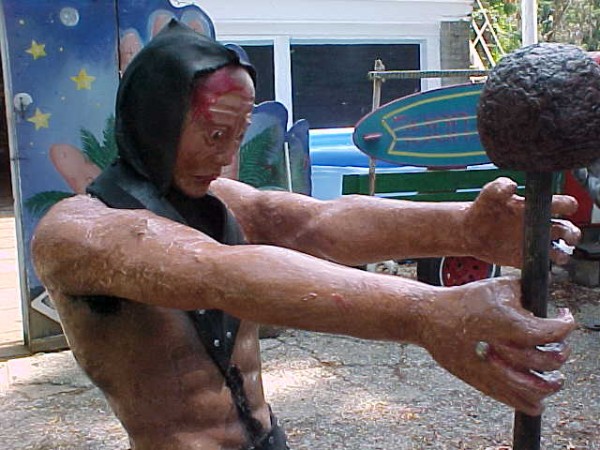 Grouping of three fiberglass figures used at the famous Castle Dracula attraction on the boardwalk, Wildwood, New Jersey that was destroyed by fire many years ago. These figures were saved and are now available for sale. Just a great example of early american amusement park dark ride figures. Professionally brought back to their original condition, these figures would make a great addition to any collection. Where will you ever find another set????………..