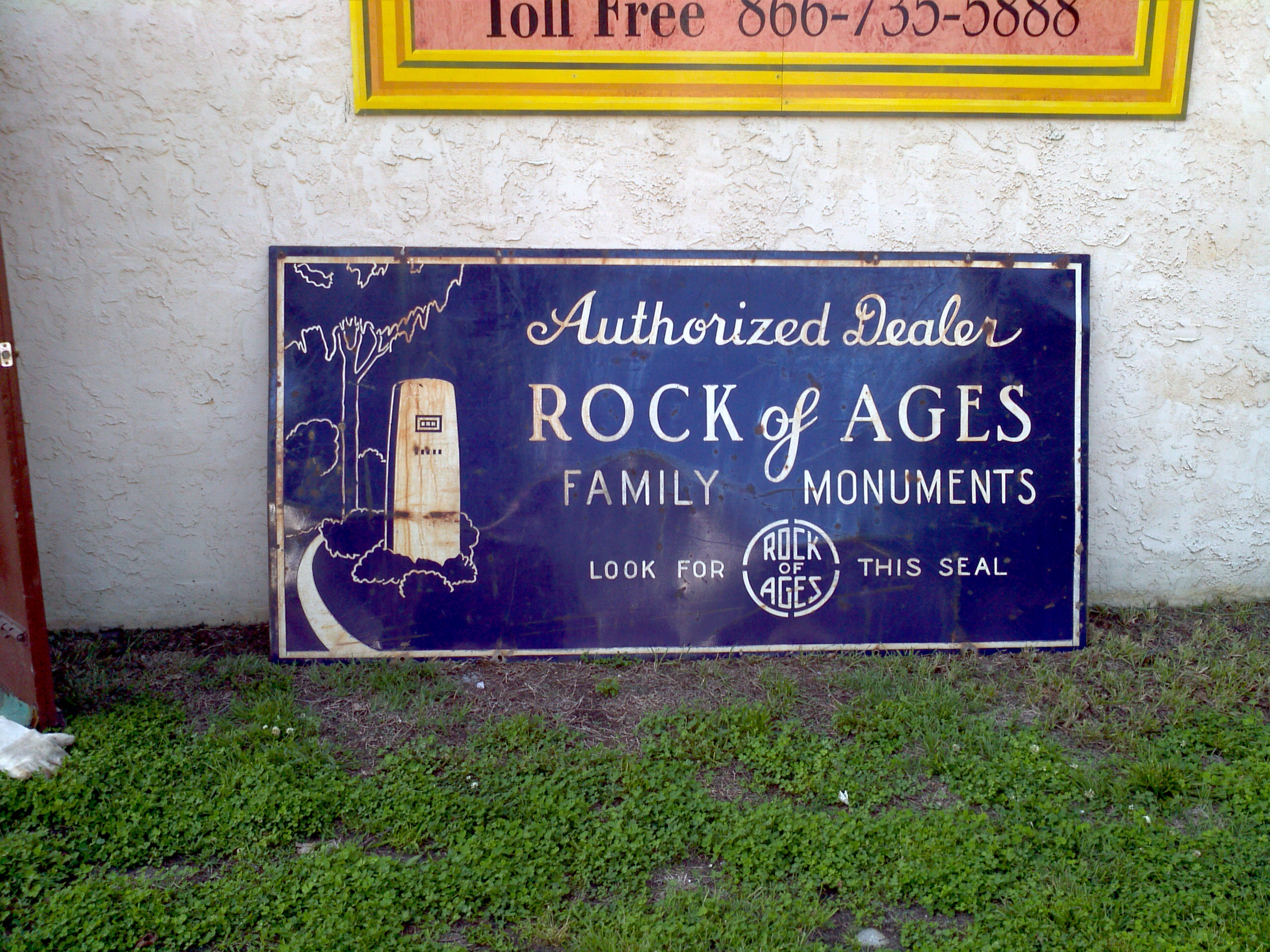Rare Huge Rock Of Ages Porcelain Monument Sign