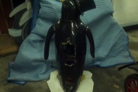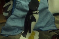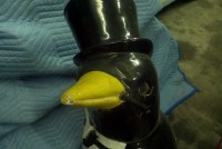 Rare 1930’s paper mache Kool cigarette smoking Penguin automaton store display in working condition. Head moves and arms swing up and down but the motor mechanism will meed to be lubricated and adjusted for proper movement. Body is in fairly decent condition with some flaking and will need restoration. Left arm has flaking and right arm had nails inserted to keep arm attached for movement. Motor and all tubing to make the Penguin smoke appears to be complete but will need some attention. Not sure about the logo “KOOL” that should appear on the Penguins front. Measures 44″ tall. Ask questions for more photo’s or additional information. Rare as can be and a must for any collector……