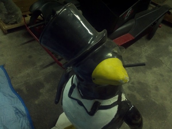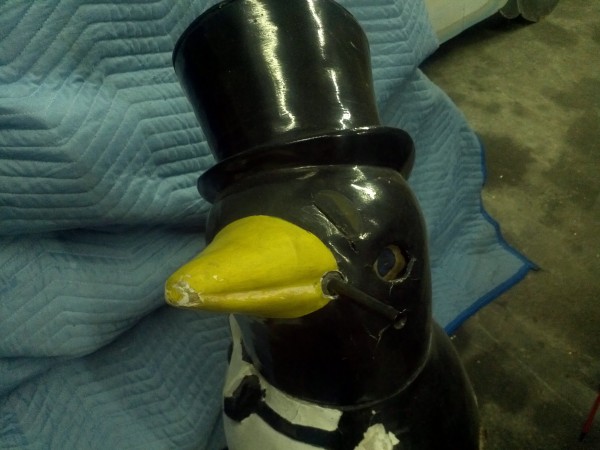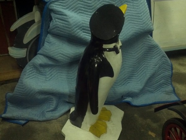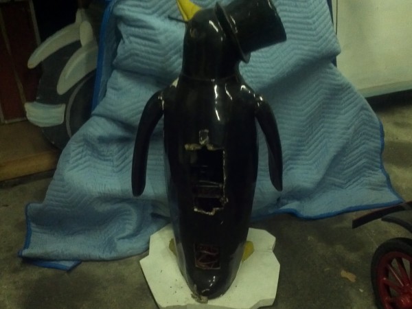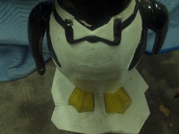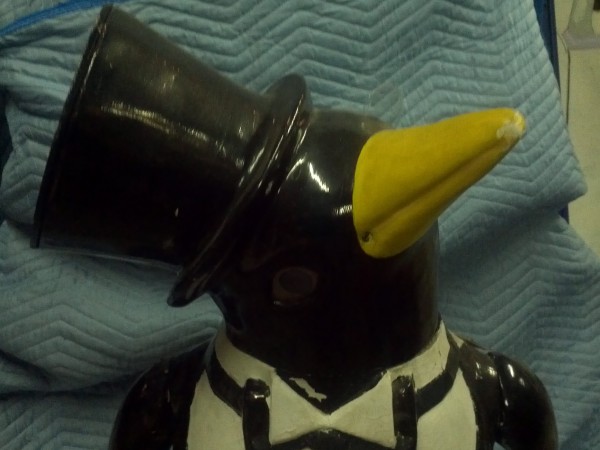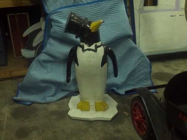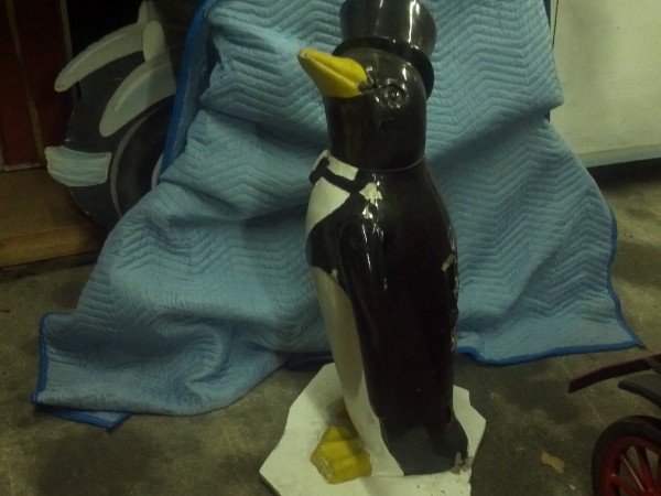 Rare 1930’s paper mache Kool cigarette smoking Penguin automaton store display in working condition. Head moves and arms swing up and down but the motor mechanism will meed to be lubricated and adjusted for proper movement. Body is in fairly decent condition with some flaking and will need restoration. Left arm has flaking and right arm had nails inserted to keep arm attached for movement. Motor and all tubing to make the Penguin smoke appears to be complete but will need some attention. Not sure about the logo “KOOL” that should appear on the Penguins front. Measures 44″ tall. Ask questions for more photo’s or additional information. Rare as can be and a must for any collector……