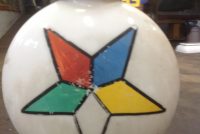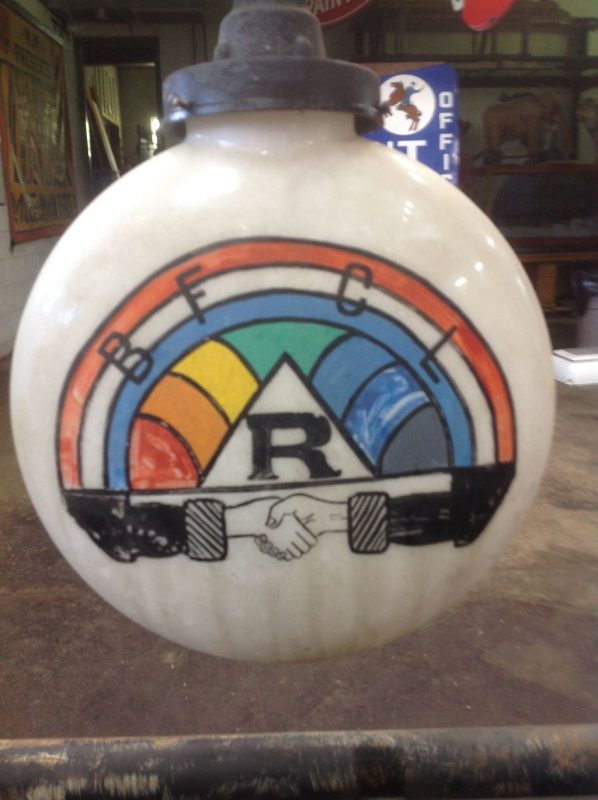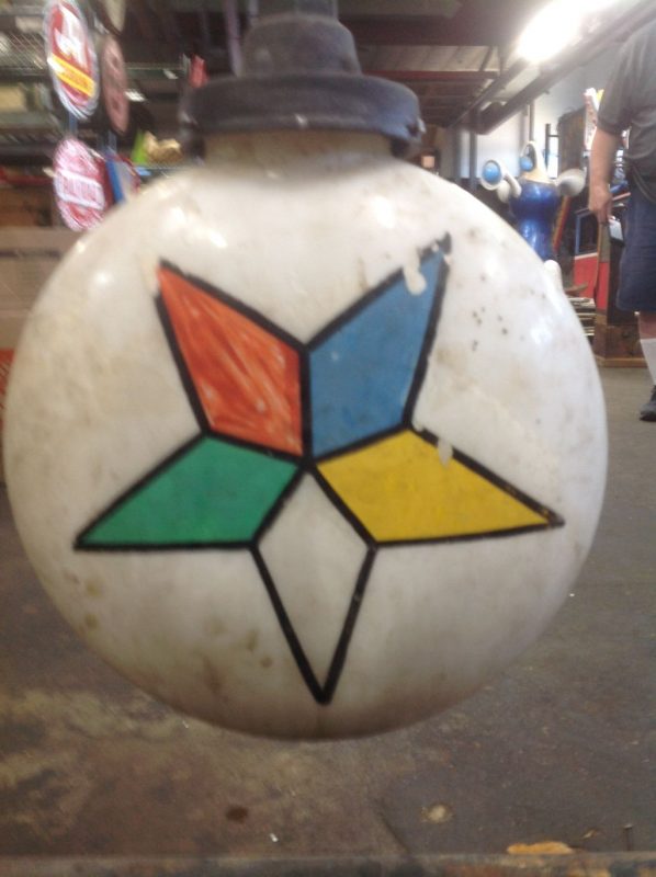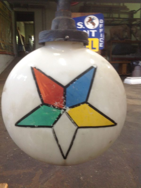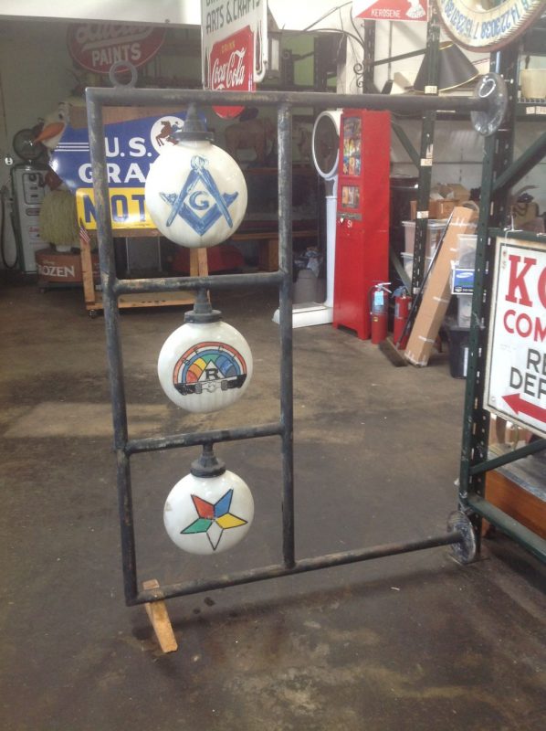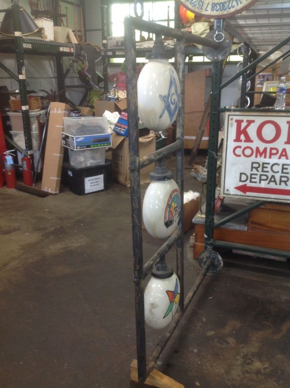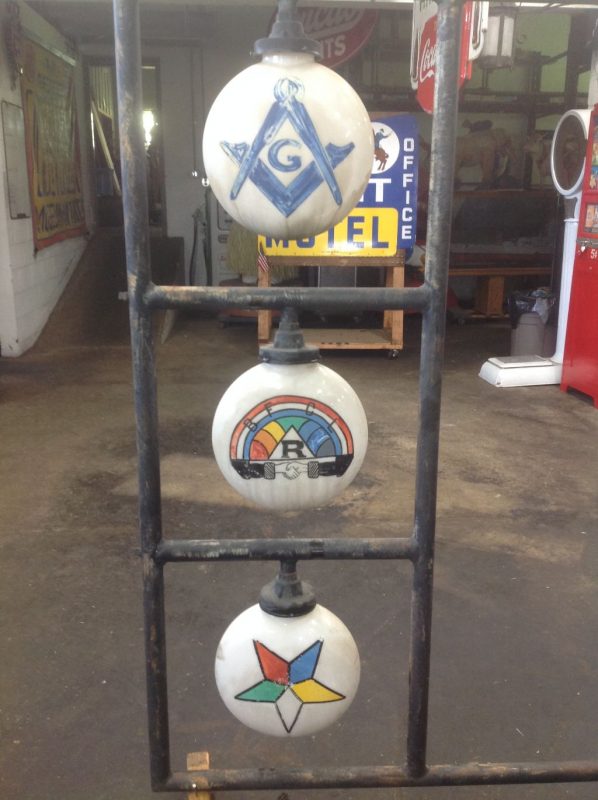 Rare as rare can be double sided Odd Fellow Lodge building trade sign in as found condition. Measures 50″ x 64″ with original globes. Will need to be rewired but a real find for anyone collecting Odd Fellow’s stuff.