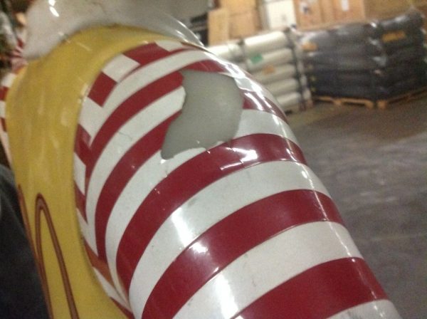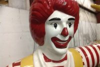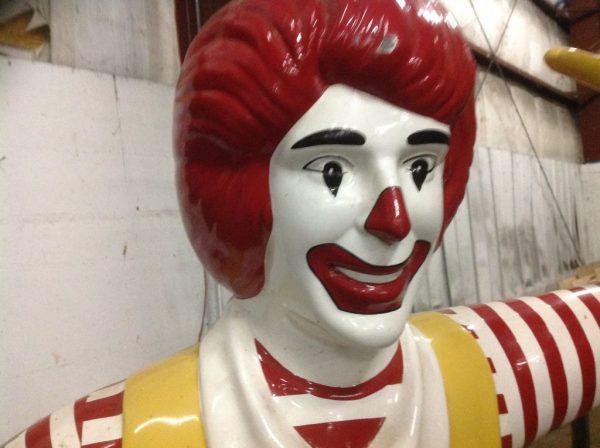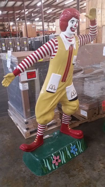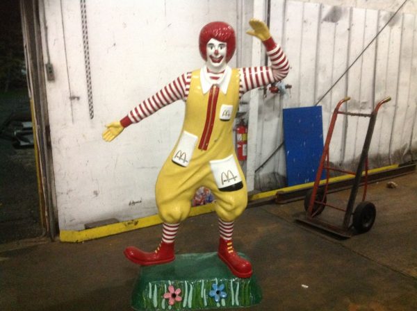 Ronald McDonald playland statue in as found condition. Ronald has a few surface chips and dings along with some lifting paint but overall in nice shape for displaying. Very nice example of an early Ronald………..