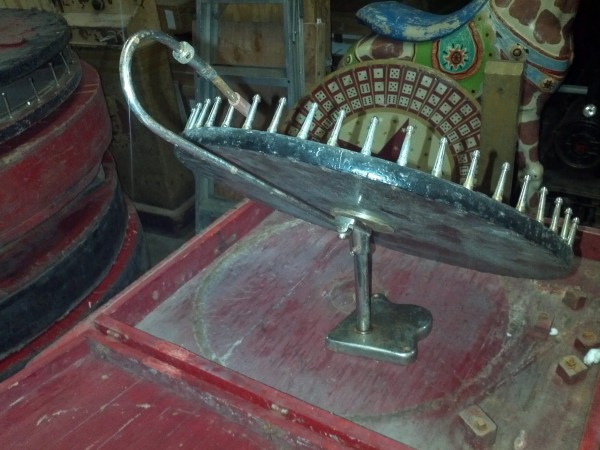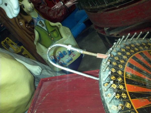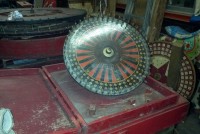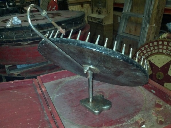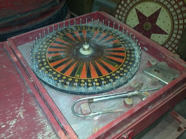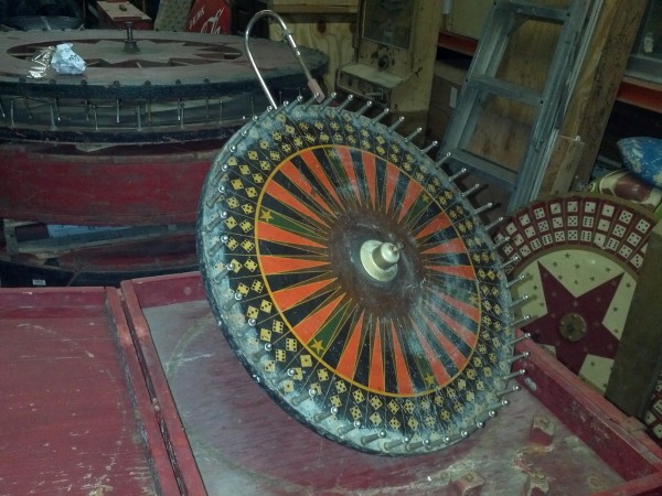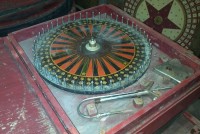 Nice old barn fresh gambling wheel with angled stand and case in as found condition. Will need a good cleaning and polishing but otherwise wheel looks original. Spin the wheel and win………