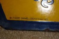 Super rare Sunoco double sided porcelain gas sign marked “Baltimore Enamel, 200 Fifth Ave., NY. There are other anty-nok gas signs but very few carry the “Sunoco” label. Overall fantastic condition measuring 22 1/2″ long x 15″ tall. Needs light cleaning and placed in your collection…….